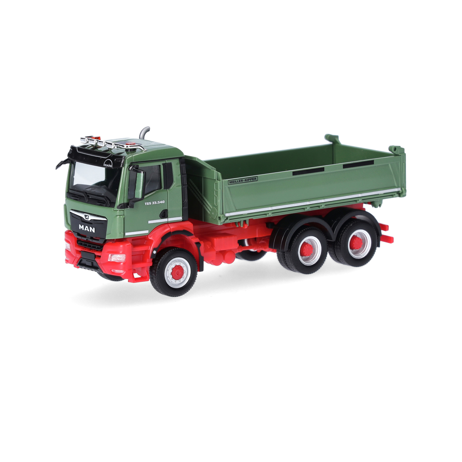 Der MAN TGS NN 33.540 Meiller Dreiseitenkipper im Maßstab 1:87 ist eine detailgetreue Miniatur des leistungsstarken Baustellenfahrzeugs. Dieses originalgetreue Herpa-Modell überzeugt durch seine präzise Verarbeitung, hochwertige Bedruckung und realistische Proportionen. Die lose beigelegten Spiegel und der Hydraulikkolben ermöglichen eine individuelle Gestaltung und erhöhen den Sammlerwert.