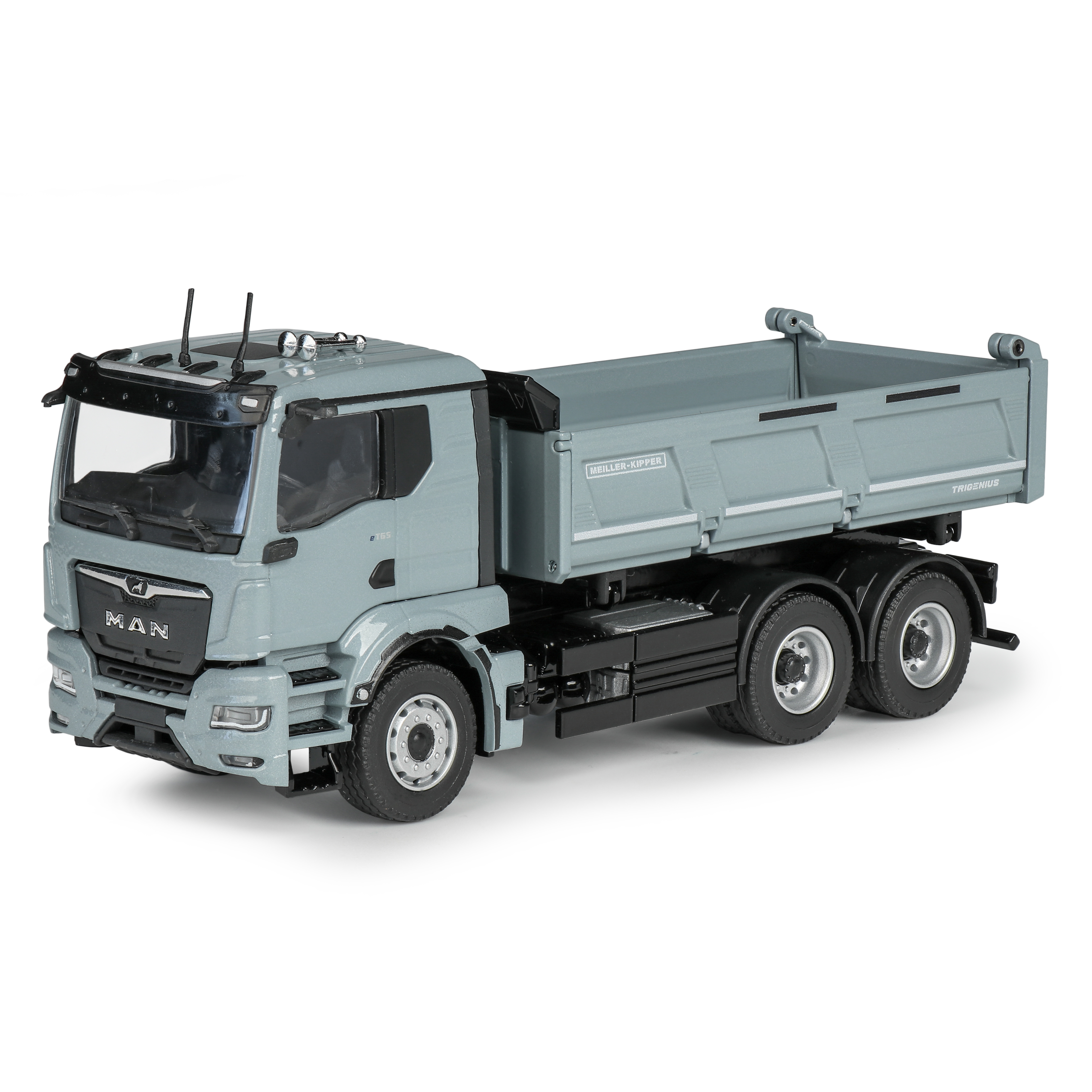 Erleben Sie höchste Detailtreue und Funktionalität mit dem MAN eTGS NN mit Meiller Trigenius Dreiseitenkipper im Maßstab 1:50. Dieses hochwertige Modell aus Zinkdruckguss überzeugt durch seine realistische Nachbildung und vielseitige Kippmechanik. Die Kippmulde lässt sich dank ausgeklügelter Kinematik nach drei Seiten kippen – ideal für Modellbau-Enthusiasten und Sammler. Eine pendelnd gelagerte Seitenklappe, eine abklappbare Seitenklappe sowie eine schwingend öffnende Heckklappe sorgen für authentische Bewegungsfunktionen. Die Akkupacks sind am Fahrgestell montiert, Spiegel und Antennen liegen zur individuellen Montage bei. Ein Muss für jeden Liebhaber moderner Nutzfahrzeugmodelle!