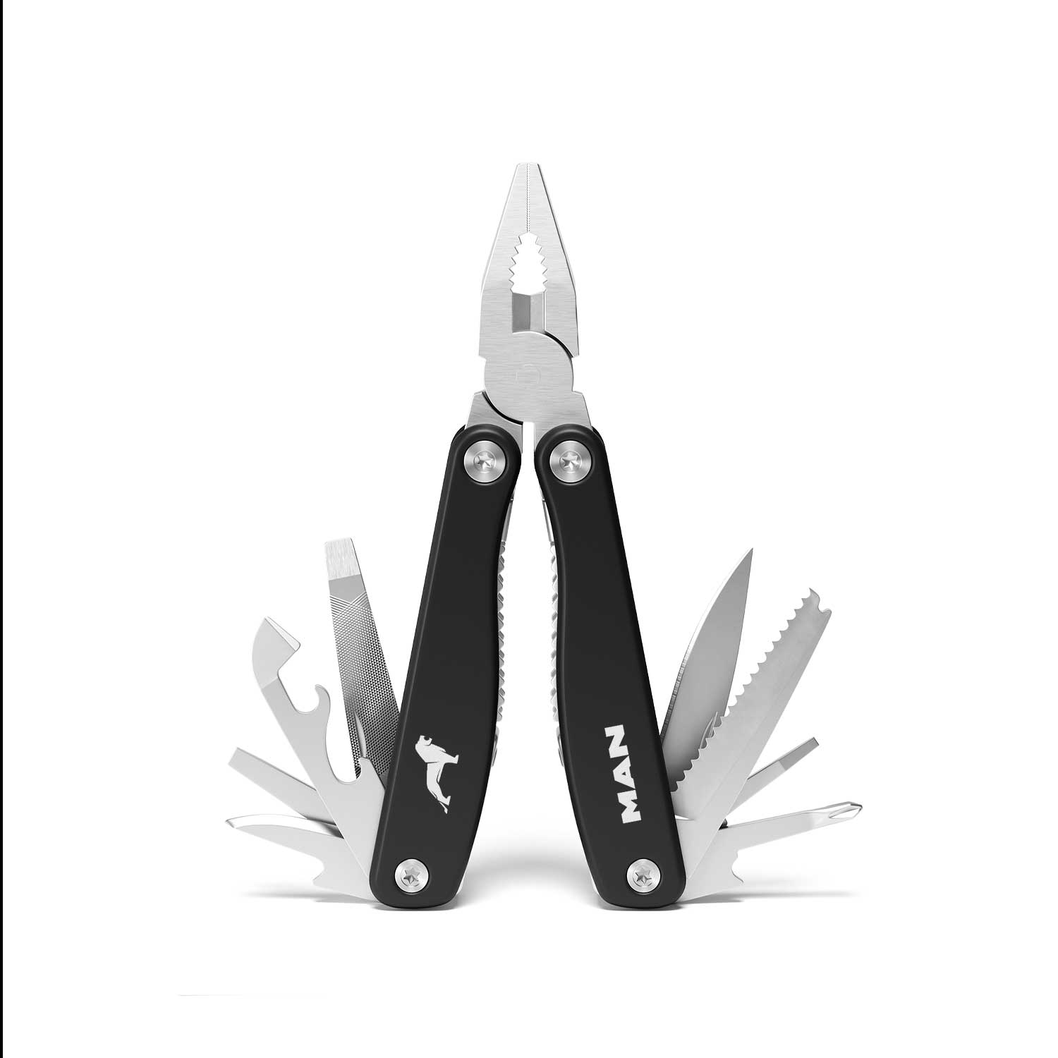 Verlange alles von diesem Multitool! Ob beim Schneiden von Drähten, Drehen von Schrauben oder mit seiner kräftigen, gegossenen Zange – dieses Multifunktionswerkzeug unterstützt Dich nach Kräften in jedem entscheidenden Moment. Dank der zuverlässigen Arretierung bleiben alle Funktionen sicher in Position und lassen sich bei Bedarf einfach lösen. Mit seinen schwarzen Aluminiumgriffen und der praktischen, mitgelieferten Gürteltasche ist dieses Multitool nicht nur funktional, sondern auch optisch ein Highlight. Perfekt geeignet für Outdoor, Camping, Heimwerker und alle, die ein robustes, kompaktes Werkzeug schätzen.